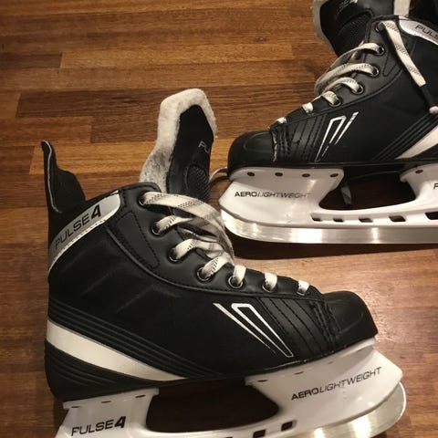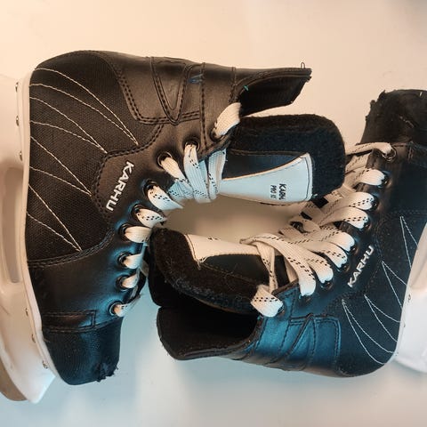 Karhu Jääkiekko luistimet, koko 35. Mustat luistimet jääkiekkoon, sopivat lapsille tai pienikokoisille käyttäjille.