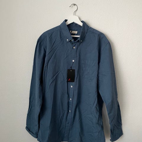 Käyttämätön ja hintalapullinen miesten vaaleansininen kauluspaita. Koko XXL. Slim fit. Säilytyksestä ryppyinen