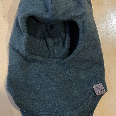 Merinovilla kypärämyssy, kokoa 92-104, väri harmaa, ollut yhdellä käytössä. Pesty hajusteettomalla pesuaineella, taloudessa ei ole eläimiä.