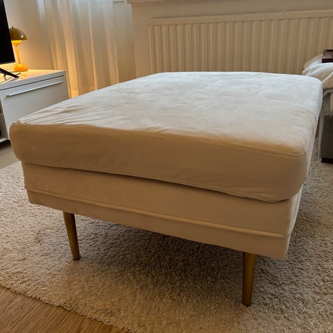 Hyvässä kunnossa oleva liila/vaaleanpunainen rahi. Kankaan saa pois jos jalat irrottaa joten osa tahroista lähtee varmasti pesussa pois.