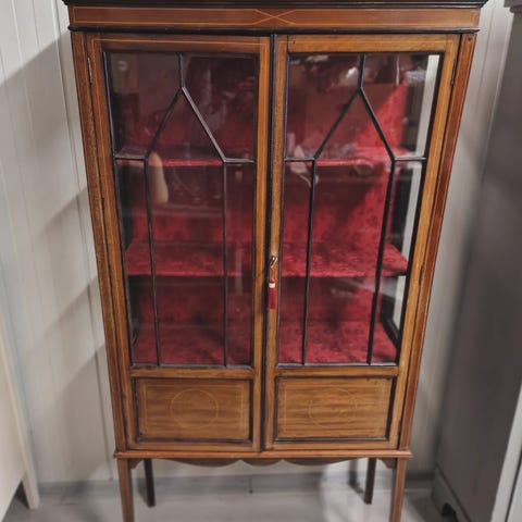 Vanhan ajan vitriini myytävänä. Yläosasta löytyy lasiovet ja alta erittäin tilava kaappi. Avain tallessa ja lukot toimivat ovissa. Vanhaa madon reikää jaloissa sekä taustassa. Ei hajuja. Runko kaikin puolin ehjä. Kaapin kannessa viiluvaurio.