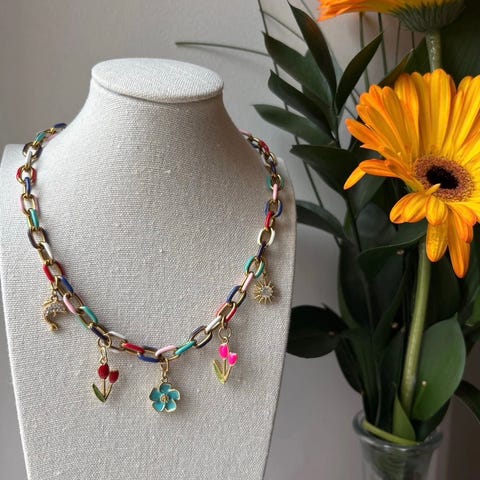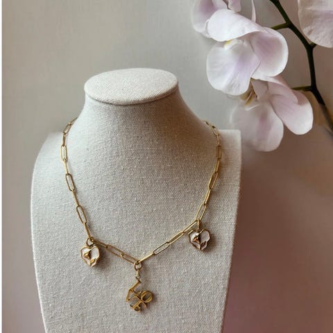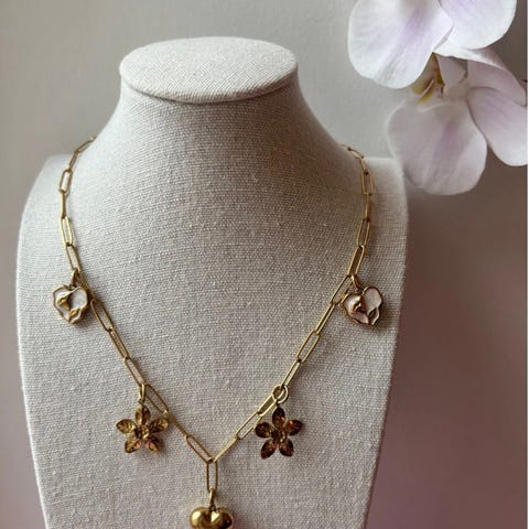 Kaunis, itsetehty ruostumattomasta teräksestä valmistettu, kullattu kaulakoru.