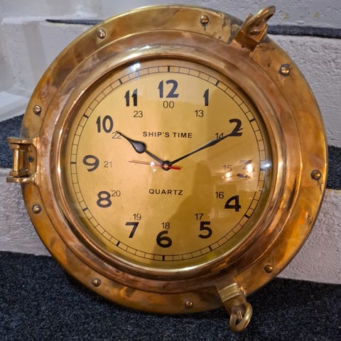 Kaksi merenkulkua varten tarkoitettua mittaria, joissa on messinkikuoret. Yksi on kello roomalaisilla numeroilla ja toinen barometri. Mittarit ovat pyöreitä ja niissä on ripustusmahdollisuus. Kellon patteri koneisto vaatii huoltoa tai vaihdon , barometrissa ei ole näkyvää virtalähdettä.