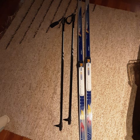 Myydään 150cm pituiset sukset seuraavalle hiihtäjälle.