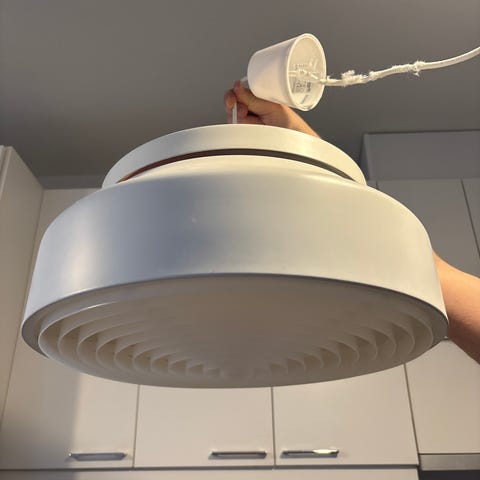 Valkoinen kattovalaisin joko 70-tai 80-luvulta.
