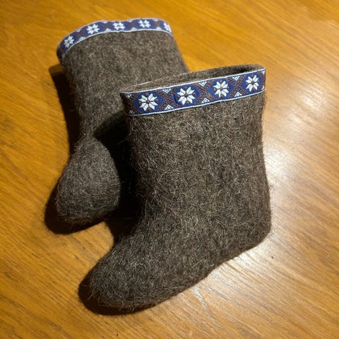 Lämpimät huopatossut vauvalle. Pehmeää villaa, lämpöiset ja mukavat jalassa. Käyttämättömät. Vuoden 2018 äitiyspakkauksesta. Tossuissa on Suomi 100 -painatus. Niissä on myös painatus 80, jolla juhlistetaan myös äitiyspakkauksen juhlavuotta. Tossun ulkomitta on noin 10,5 cm.