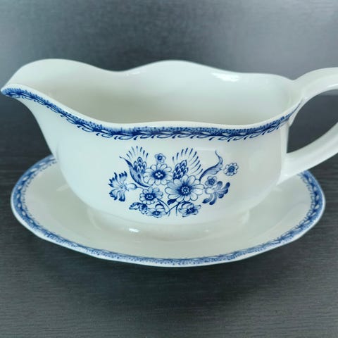 Ehjä, kannen alapuolella olevaa vähäistä krakeloitumista (lasitteen halkeamat, näkyvät kuvassa) lukuunottamatta ehjä soppaskooli.