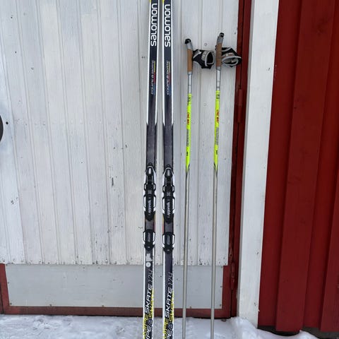 Fischer SCS -luistelusukset, mukaan 155cm pitkät sauvat ja saattaapi sopivat monotkin löytyä jos uskaltaudun ulkovarastoon näillä pakkasilla 😄 SNS-side, säilyneet hyväkuntoisina (liekkö paljoa näillä edes aikanaan hiihdelty).