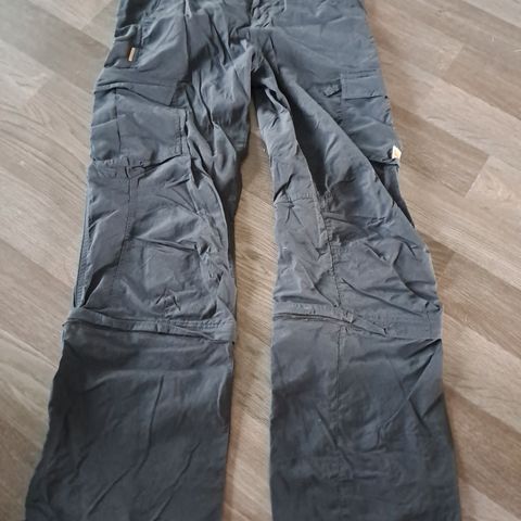 Vähän käytetyt housut, joiden pituus yllättävän lyhyet. Sekoite-matriaali, luomupuuvilla ja polyesteri.