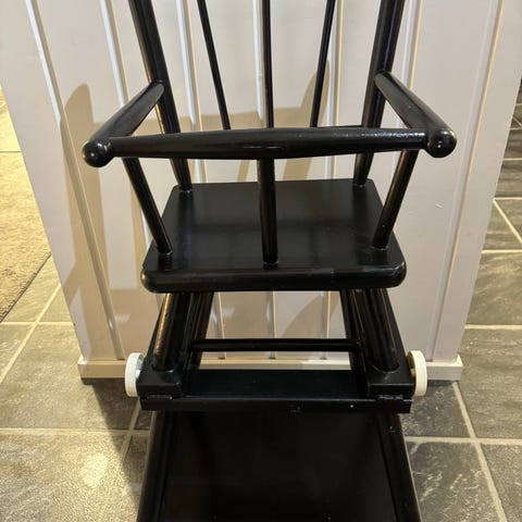 Myydään syöttötuoli, perinteinen malli. Maalattu itse mustaksi ja maali joistain paikoin lähtenyt. Muutoin hyväkuntoinen ja palvellut loistavasti. En postita tuotetta, vain nouto.