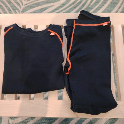 Helly Hansen merinovillapuku. Polvet ja kyynerpäät vahvistettu fleecellä. Housujen toisessa polvessa joku jälki (näkyy toisessa kuvassa). Muuten oikein siistikuntoiset.