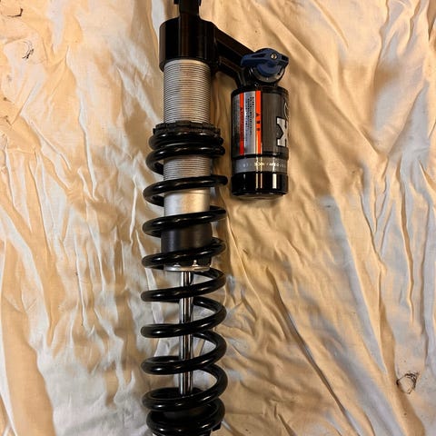 Yamaha Pro-Action alustasta takapukin Fox Float vaimennin puslineen. Bolt-on setti mittojen puolesta. Iskunvaimentimessa käytöstä tullutta kulumaa. Iskari pitää paineet, ei havaittu vuotoa. Tällä huikea painonsäästö verrattuna vakioon.