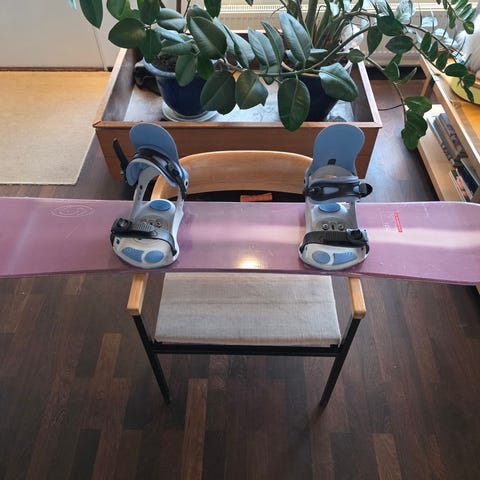 Salomonin 144cm lumilauta Burtonin step in-siteillä ja monoilla
