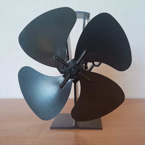 Klimacom HL-700C-9005 kamina puhallin musta. Puhallin on itsestään käynnistyvä, soveltuu käytettäväksi 50-245 °C lämpötiloissa ja tuottaa ilmavirran 150 CFM. Materiaali metalli, paino 544 g. Käynnistys lämpötila on oikeasti n.60 astetta. Vuolukivi takan päällä ei käynnisty, mutta metallipintaisen kaminan päällä hyrrää kivasti.