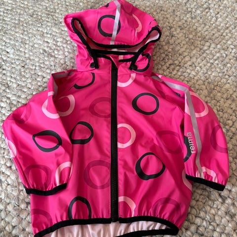 Uutena ostettu ja yhdellä lapsella yhden kauden pidetty ihana Reiman sadeasu Moomin koossa 80cm. Meillä asua käytettiin lapsen ollessa kokoa 74cm-86cm, joten puku kestää käytössä pitkäänkin. Puvun kunto erinomainen, ainoa miinus jo kuluneet jalkalenksut. Huppu irroitettava.