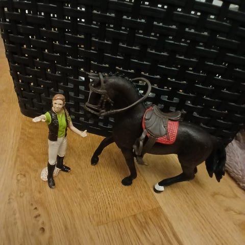 Siisti kuntoinen schleich connemaraponi nuppu ja suitset ja satula. Poissa pari likaviirua mutta siisti muutoin, satulavyön pää katkennut muuten haittaa käyttöä. Hinta varusteineen 18€ Pelkän ponin voi osta hintaan 12€