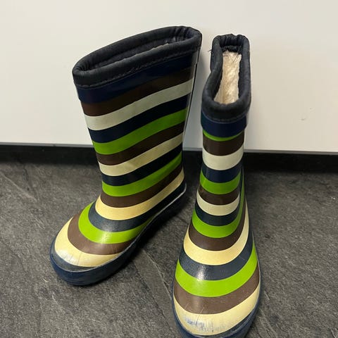 Kappahlin Kax-merkkiset vuorelliset kumisaappaat lapsille. Kokomerkintä 22/23 eli sisäpohjan pituus 15cm. Saappaissa on pehmeä ja lämmin fleecevuori sisäpuolella. Saappaat oikein hyväkuntoiset, ainoa miinus hieman sivusta irti lähtenyt vuori (kts. kuva), joka ei käytössä haittaa.