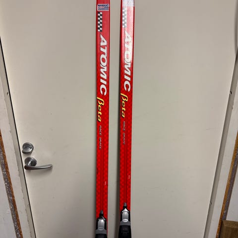 Atomic luistelusukset. Pituus 148 cm. NNN-siteet. Useamman vuoden vanhat ja paljon hiihdetyt.