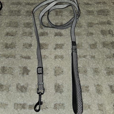 Rukka koirien heijastinhuivi, väri vihertävän keltainen. Koko M, Rukan mukaan kokoa pystyy säätämään 25-37cm välillä. Kunto kohtalainen, heijastinhuivissa pientä likaa jos tarkasti katsoo.