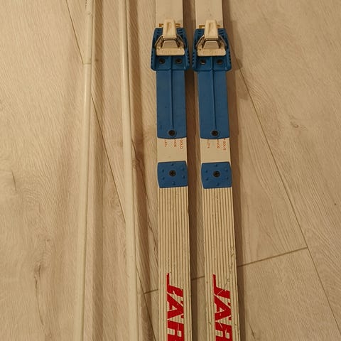 Sukset ja sauvat vaikka koko perheelle. Ikää löytyy, eivät vastaa uutta. Vasemmalta oikealle: