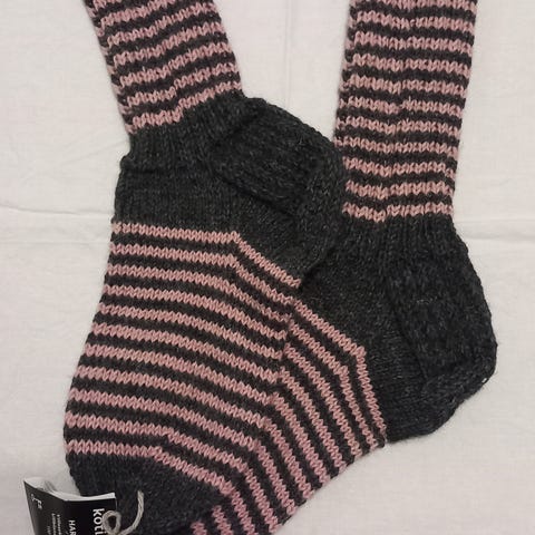 Kirjava villasukat kokoa M 42-43. Sukat ovat värikkäät ja valmistettu villasta 75% ja 25% polyamidi, sopivat miehille.