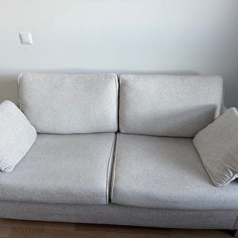 Ei uusi, mutta normaalia käytön jälkeä. Käytetty sisätiloissa suojapeitteen kanssa. Tyynyjen ja istuinosien päälliset äskettäin pesty. Savuton koti, ei lemmikkejä eikä lapsia.