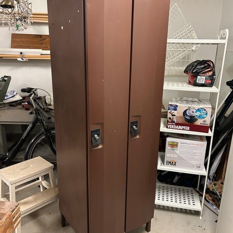 Kaso Oy metallinen kaappi, jossa on lukko. Kaappi on väriltään vaalea ja siinä on kaksi ovea. Soveltuu säilytykseen esimerkiksi toimisto- tai varastotiloissa.
