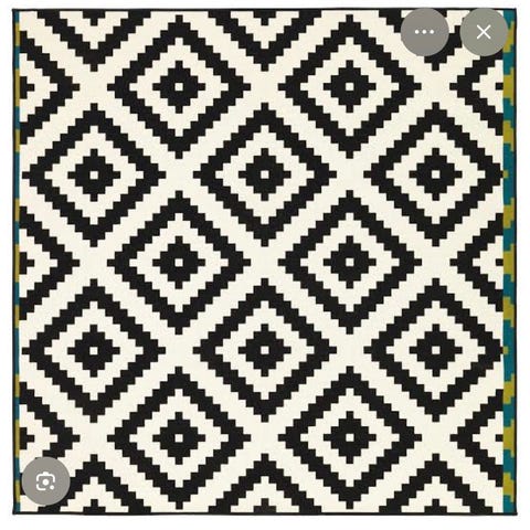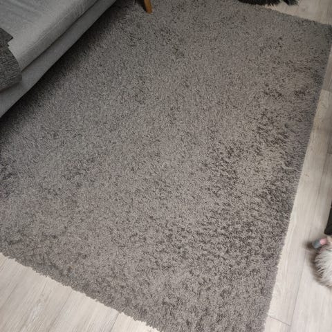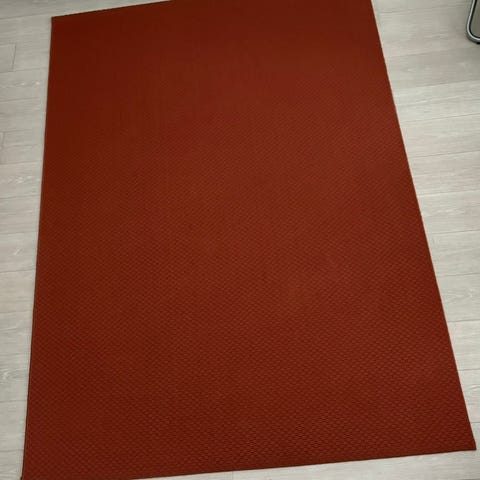 Ikean suuri Morum-matto 200x300cm. Kaikenlaista likalänttiä löytyy jotka lähtevät pesemällä. Pesu jää siis seuraavalle. Matossa myös (kuvan vasemmassa laidassa) jälki kuuman uunipellin jäljiltä (🙈). Tämä on pysyvä jälki. Tästä suuri perusmatto tilaan, jossa ei niin priimaa tarvi olla