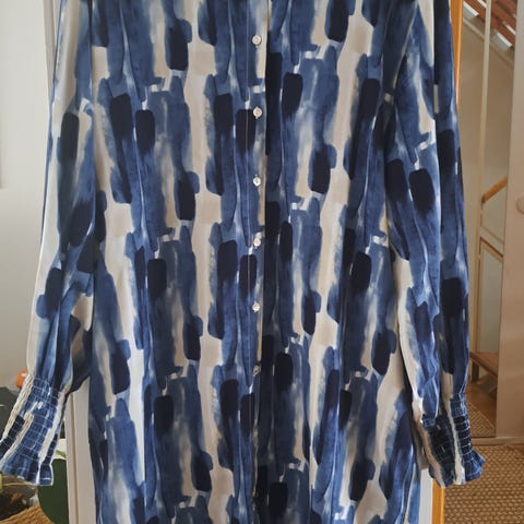 GANT Arkimekko naisten vaate, koko XL. Mekko on sinisen värinen ja valmistettu lyocell-materiaalista. Malliltaan arkimekko, jossa on pyöreä pääntie ja 3/4-hihat. Mekossa on solmittava yksityiskohta edessä. Kainalo-Kainalo mitta 65cm. Olka-helma mitta 110cm. Kerran käytetty.