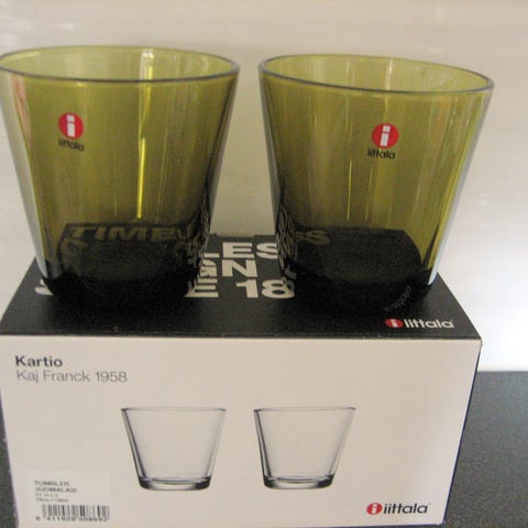 Iittala lasiset juomalasit, väri oliivi. Käytettyjä, mutta siistissä kunnossa. Pesty käsin. Voidaan myydä kaikki 4kpl yhdessä tai erikseen 2kpl settinä. Erikseen 30€/2kpl tai 50€/4kpl