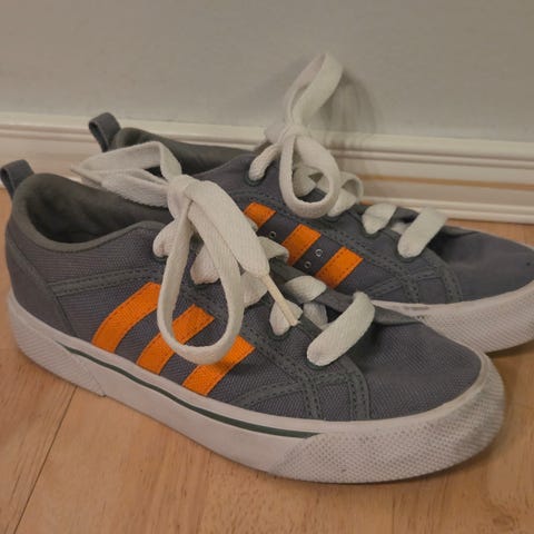 Adidas lasten unisex-tennarit, koko 31. Väriltään valkoiset mustilla yksityiskohdilla. Materiaalina pääosin keinonahka ja kumipohja. Toridiili tai nouto