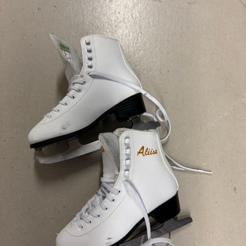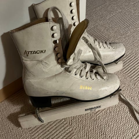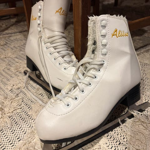 Aliisan luistimet, koko 38, valkoinen väri. Sopivat luistelun harrastamiseen. Kerran tai kaksi käytetty, pari mustaa jälkeä. Mutta hyvässä kunnossa