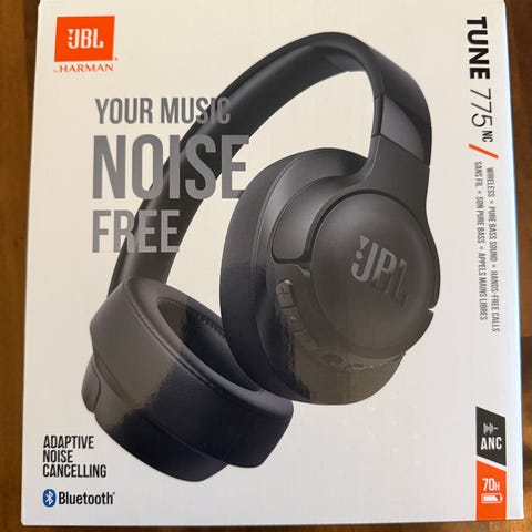 JBL Tune 775BT langattomat kuulokkeet mustana. Kuulokkeet tukevat Bluetooth-yhteyttä ja aktiivista melunvaimennusta (ANC). Mukana mukautuva melunvaimennusteknologia ja kätevät ohjaimet. Soveltuvat musiikin kuunteluun langattomasti.
