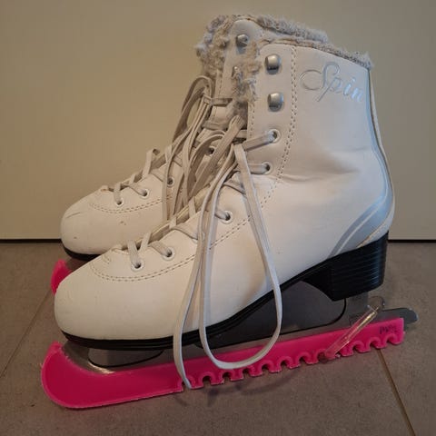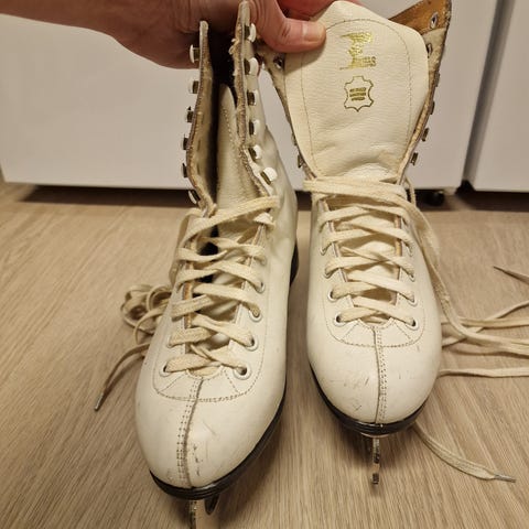 Vanhat, mutta käyttökelpoiset luistimet. Olleet edelleen käytössä, käytön jälkiä näkyy. Sisämitta 24,5cm.