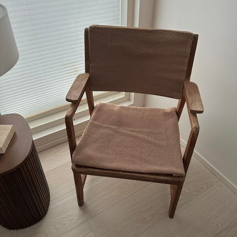 Ehjä ja siisti 50-luvun nojatuoli. Verhoilu jäänyt tässä kesken. Selkänojaa varten saa samaa kangasta mukaan mikä istuinosassa. Voi tietysti myös aivan uudet, omantyyliset tähän laittaa ☺️🤎