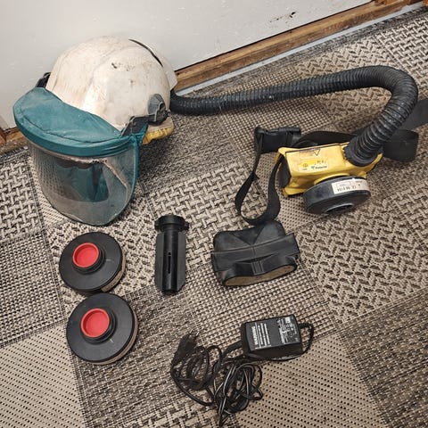 Shigematsu sts sync09 raitisilmaski, käytetty muutaman kerran hiontatöisså. Mukaan maski,siihen 2uutta muovista maskin suojaa.laturi. 2akkua . Sekä 2kpl yhdistelmäsuodattimia. Käyttöohjekirja.