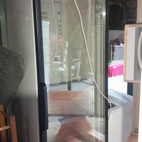 Pakastimessa on käytön jälkiä, kuten naarmuja ja kulumaa pinnalla, mutta se on toimiva.