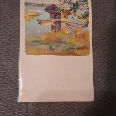 Postikortti, jossa on kuva kesämaisemasta ja lapsista rannalla. Kortissa näkyy kaksi lasta veden äärellä, taustalla järvi ja puita. Postikortin koko 9x14cm. Signeeraus Martta Wendelin. 40-50 luvulta kulkematon. Suojattuna muovitaskussa. Pk 2,75€ kirjeenä tai nouto Riihimäki