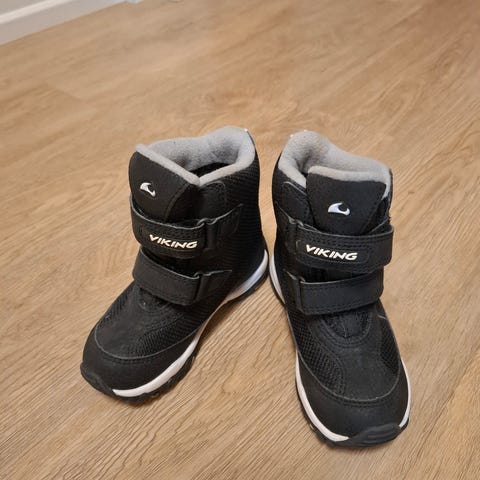 Hyväkuntoiset, vedenpitävät talvisaappaat (Viking Equip Pull On Warm WP) tarrallisella varrella. Tarran avulla varren leveyttä saa kätevästi säädettyä, niin kerrastot mahtuu vaivattomasti saappaisiin.