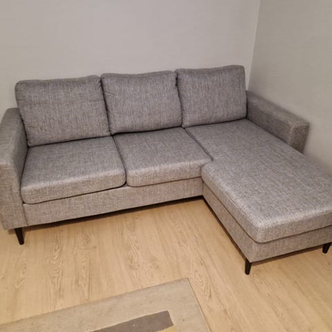 Kaikki sohvatyynyt mukaan. Sohvan vasemmalla puolella istuinosassa tahra, joka puhdistettu mutta siitä jäi vaalea jälki (näkyy kuva 2).