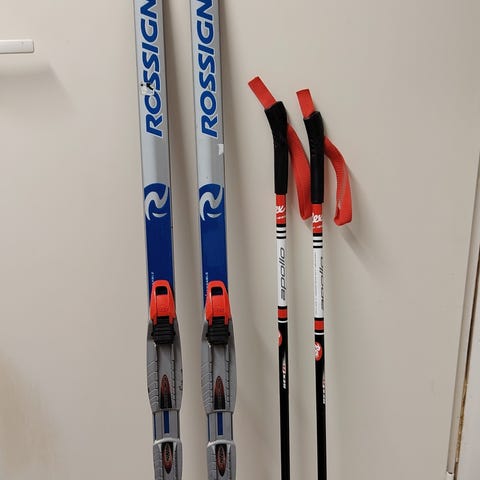 Sukset: Peltonen Delta 140cm. Rossignolin NNN-siteet. Pohjat voideltu valmiiksi.