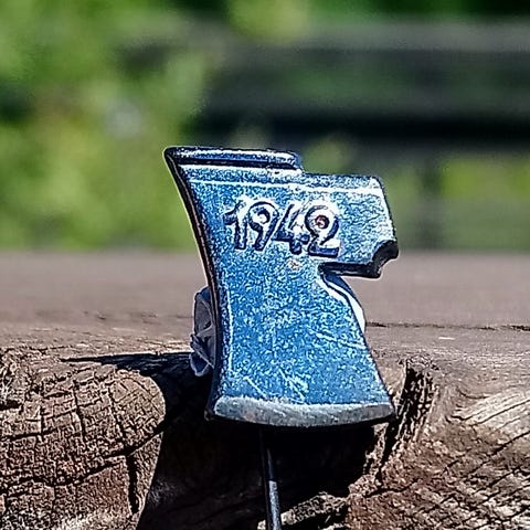 Kuvan kurssimerkki vuodelta 1938, keskustassa oleva kurssitunnus ajan saatossa kadonnut. Hopeaa, Tarkiainen, Viipuri. Takana kaiverrus, E Tapanila. Kunto muuten hyvä, mutta koska keskellä oleva kurssitunnus puuttuu, merkitsin kunnoksi vaatii korjausta. Kunto ja paino näkyvät kuvissa. Nouto tai toridiili.