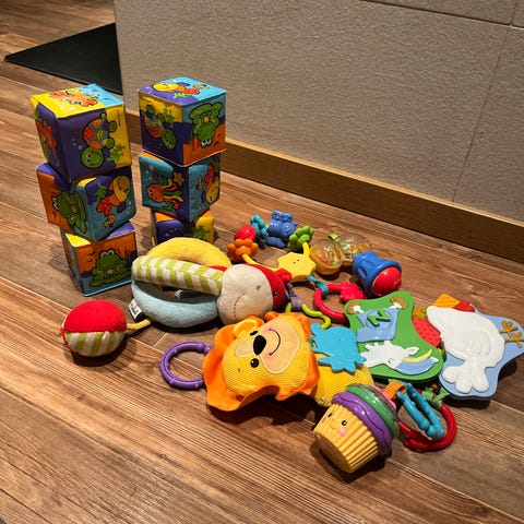 Erilaisia vauvan leluja. Yhdellä lapsilla on ollut. Kaukosäädin kuin uusi, toimiva, ääntä tulee ihan normaalisti.