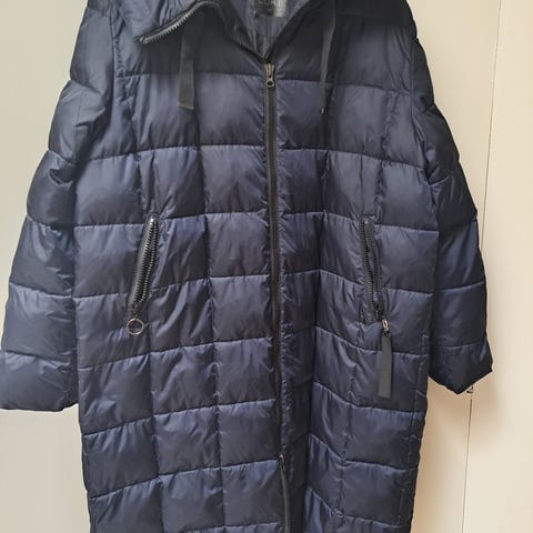 Naisten lämmin toppatakki koossa 44. Väri vaalea hopeanhohtoinen. Sivussa musta sauma. En löytänyt takissa mitään vikaa mutta en syynännyt ihan suurennuslasilla, siksi en laittanut kunnoksi kuin uusi. Taloudessa aiemmin koiria.