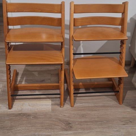 Tuoliin sopii muovinen babyset ja newbornset sekä puinen turvakaari.