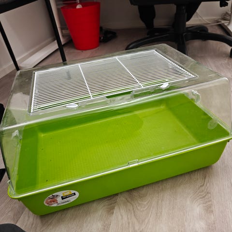 Myydään kuvan Ferplast Maxi Duna. Ollut hamsterilla. Kulmissa jyrsintä jälkiä, muuten ehjä.