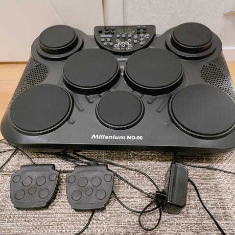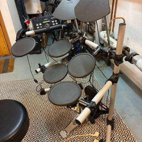 Yamaha sähkörummut. Kaikki padit toimii. Mukaan pedaaleihin kuuluvat piikkitapit (4kpl), säätöavain ja penkki