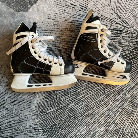 Hyvä käytetty kunto, pinnassa jonkin verran kulumajälkiä, toisen luistimen nauhoissa ruostevedestä tullutta värjäymää ja minimoinnit luistimissa (näkyy kuvissa).