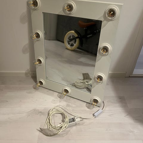 Myynnissä isokokoinen meikkipeili (leveys 90,5cm ja korkeus 60cm) ja ikean musik valaisimet 2 kpl . Myydään settinä. Valaisimissa todella hyvät ja kirkkaat valot, mikä ei häikäse, kun valaisimet peilin molemmin puolin. Tarkan ja siistin meikin saa tehtyä ison peilin ja kirkkaiden valaisimien ansiosta.