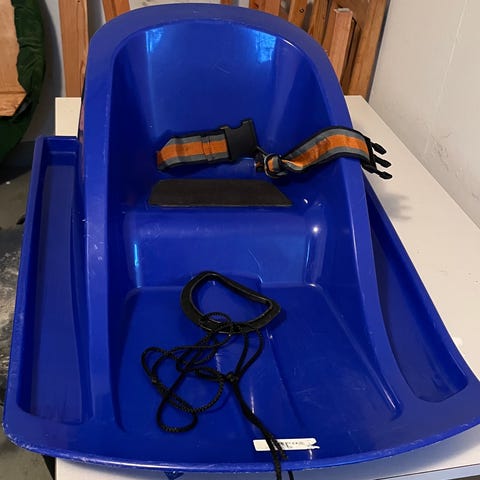 Vauvan pulkka, jossa istuineriste ja selkänoja.